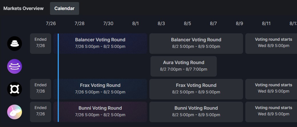 Things are running smoothly and users are enjoying the new additions. One of the new, useful features added to HHV2 is the calendar. This lays out the voting intervals for all the current bribing protocols, making it easy to see the cadence at a quick glance, or a reminder of what's coming down the pipe. Head over to hiddenhand.finance and check out the new look, features and most important, bribes today on the new and improved Hidden Hand V2