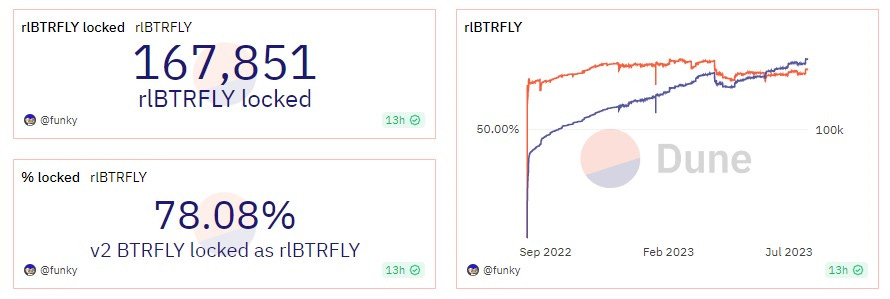 On the px/apxBTRFLY front, the milestone of $1M in TVL is getting closer every day, solidifying the use case for the “set and forget” option for your BTRFLY. The following chart demonstrates the number of reward distributions after which you should consider relocking your rlBTRFLY earnings to maximize efficiency. Please note the following graph was made by a member in the Discord server and is for informational purposes only. It does however explain when it's beneficial to switch to pxBTRFLY in terms of gas savings. Please consider your own situation when making decisions with your BTRFLY bags.
