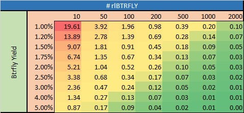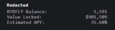 Now for some updates on the rlBTRFLY metrics to date. 94+% of V1 BTRFLY has been merged. One has to think that the holders of the remainder have most likely forgotten they own it. Of the migrated V2 tokens, 78% are locked into rlBTRFLY representing over $27M of value or one of Koltens mansions at today's prices. Bullish indeed